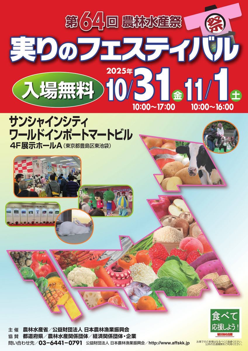 農林水産祭「実りのフェスティバル」 10/31・11/1 サンシャインシティ 全国の農産物 関東から埼玉・千葉 |