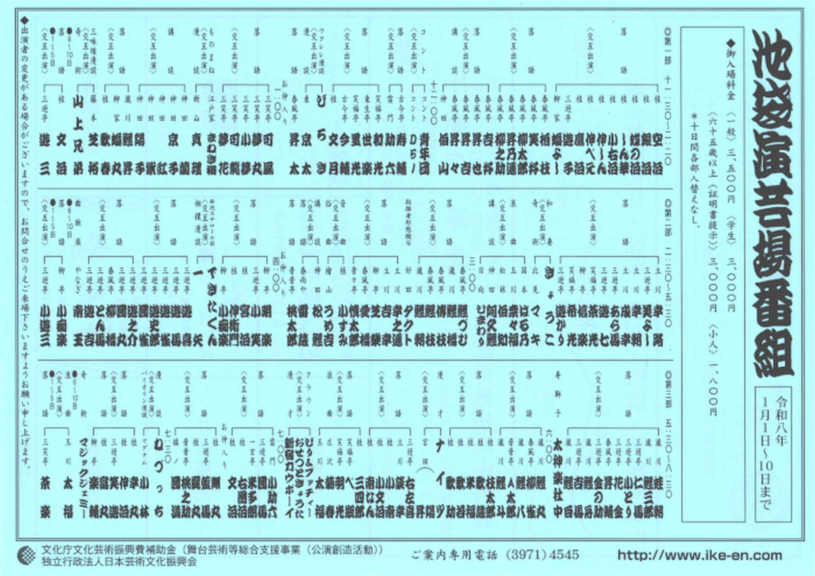 正月の池袋演芸場 噺家あいさつ興行 【上席】は落語芸術協会 【中席】は落語協会 |