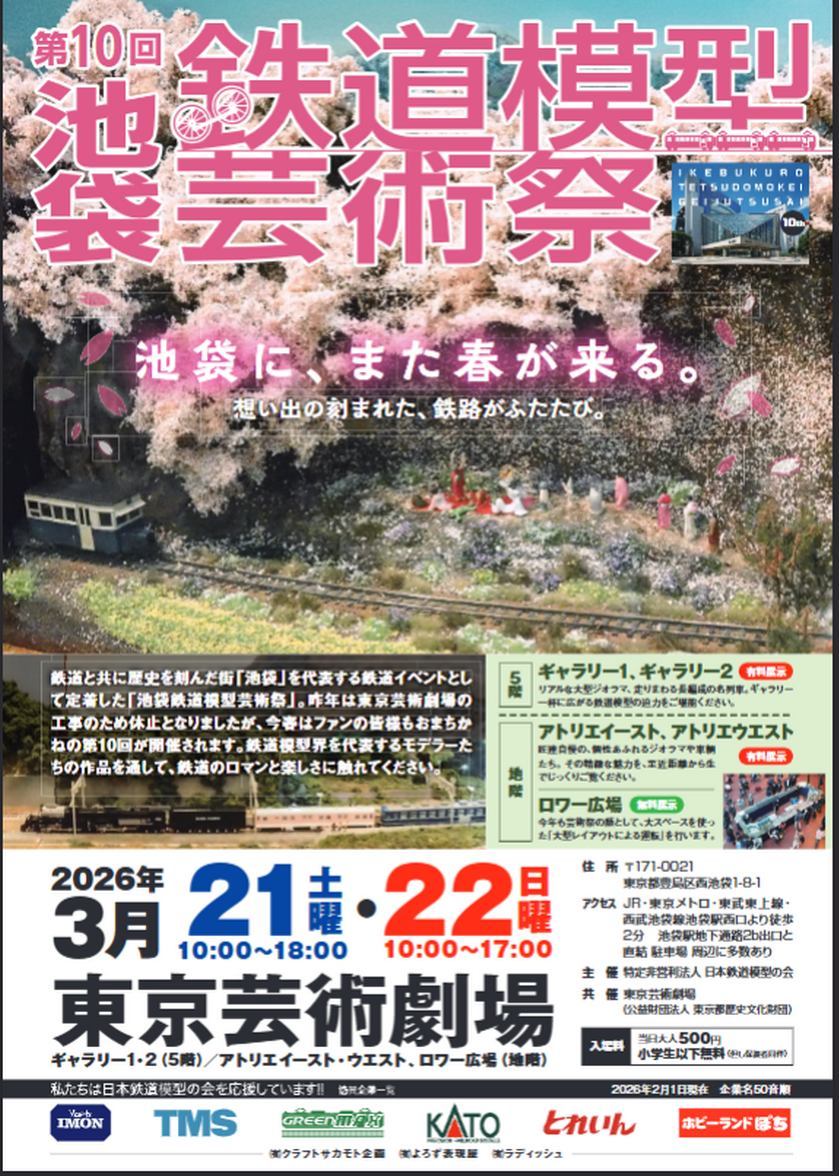 鉄道模型が大集合 鉄道模型の芸術祭 大型ジオラマ・名列車 3月21日・22日 東京芸術劇場 |