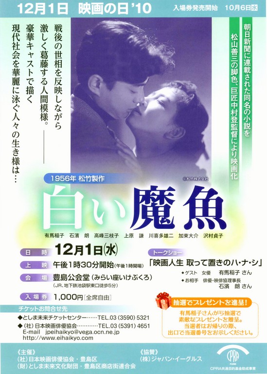 同じ12月1日から7日に東池袋の新文芸坐では、「没後40年 特技監督・円谷英二の世界」と題して円谷英二さんが特技監督した作品『ゴジラ』、『モスラ』などの連続上映が行われる。 ■映画俳優協会 http://www.eihaikyo.com/ ■新文芸坐 http://www.shin-bungeiza.com/schedule.html |