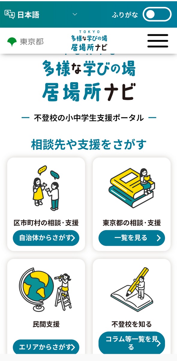 小・中学生 不登校 保護者を支援する情報のサイト 『多様な学びの場 居場所ナビ』10月20日東京都オープン |