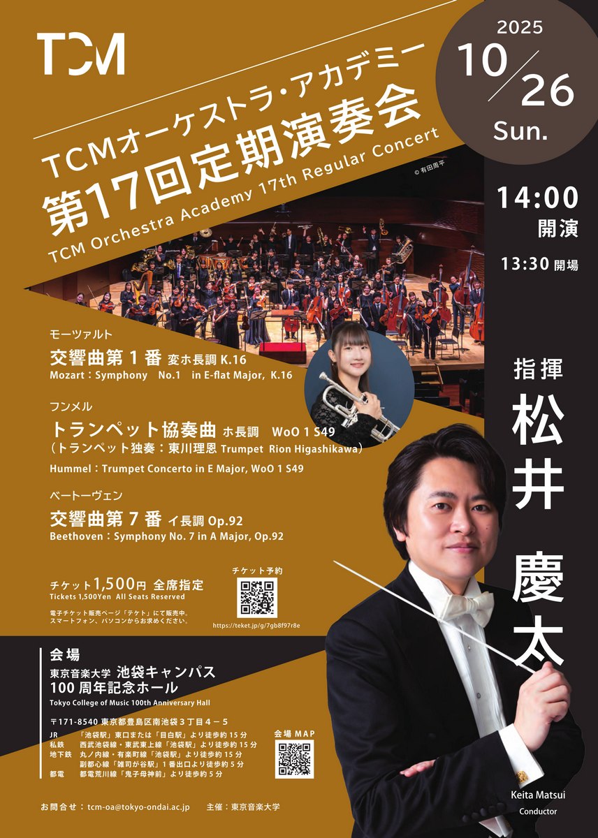 東京音大オーケストラアカデミー第17回定期 ベートーヴェン第7番 フンメル トランペット協奏曲 10月26日 |
